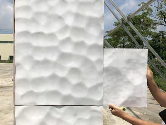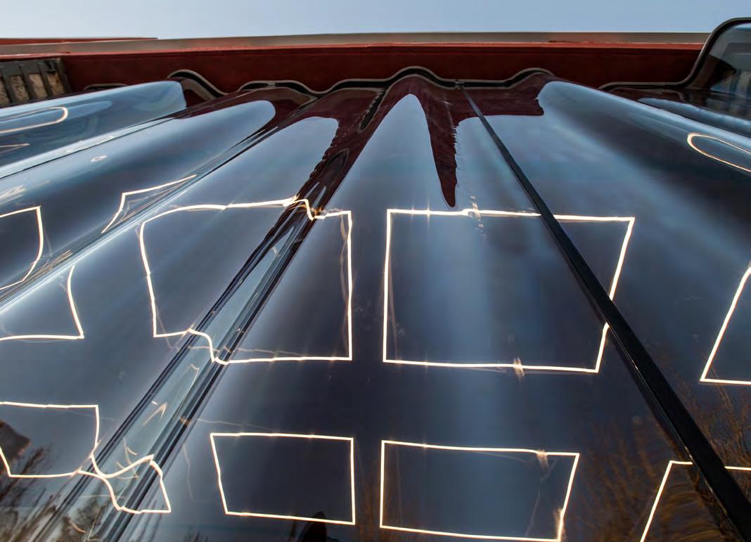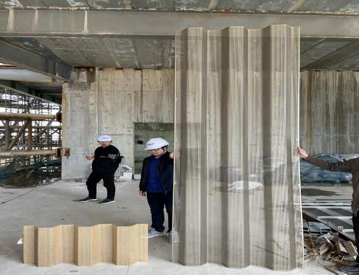placed on top of a steel mold and heated to form the desired curvatures. Laminated and shipped to the site in tailor-made wood boxes, the glass panels are hoisted vertical and inserted into the stainless steel transoms at the top and bottom. Design, engineering and craftsmanship are thus united and crystalized in the unique facade of UCCA.