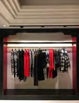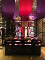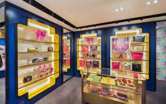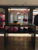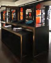 The display tables are aligned to the ceiling rectangular lights above, with different shapes to adapt to the sku types: RTW, Accessories+Travel, Gifting, Home+UCCA, and the Workshop Area.