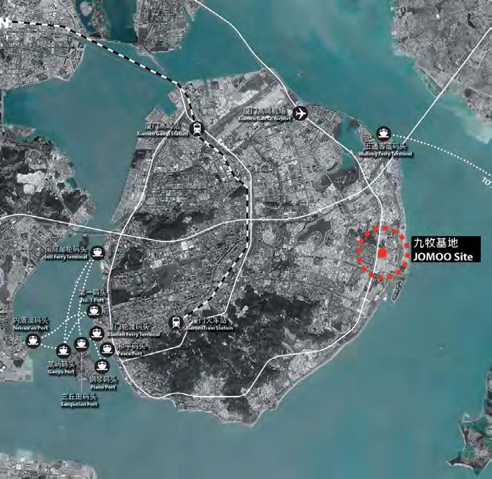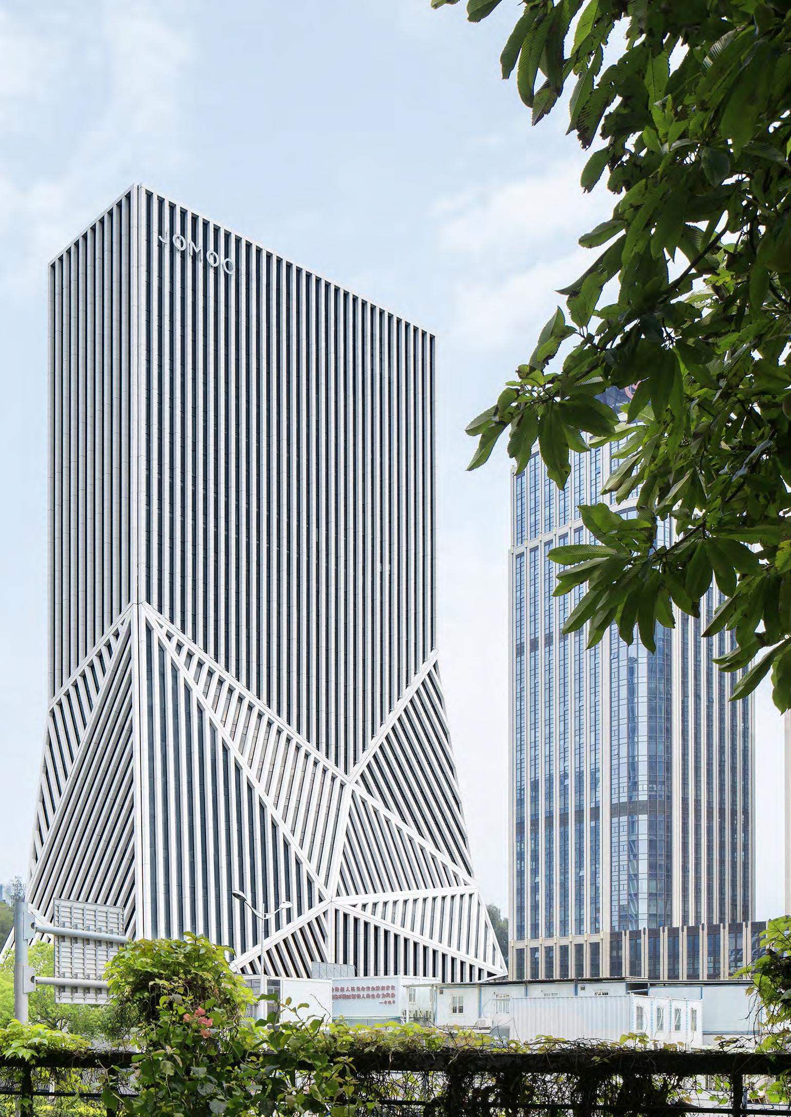 The experience of Xiamen’s newly developing business district is like those found throughout China. However, on this island the typical grid of towers negotiates lush mountains and existing pockets of urban development from the city’s long history. Within such contrasting context, JOMOO HQ embraces strategies that merge. Site qualities, spatial requirements, cultural references, and client’s corporate identity are collapsed into a singular urban statement.