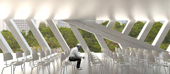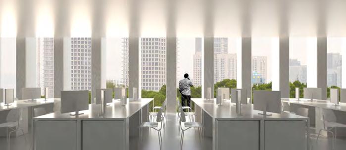 The Prism is complemented by an adjacent 35,000-squaremeter residential tower, to encourage the development of a creative community in the new CBD of Hangzhou. The two buildings form a complex that enables flexible programming and a broad repertoire of communal outdoor spaces, while maintaining a strong visual identity: archetypical yet contemporary.