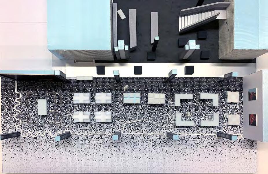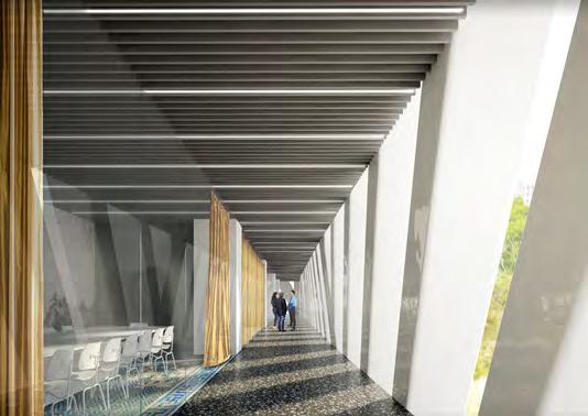 of the museum space itself. Sitting behind the soft glass curtainwall, the interior is extremely visible from the street.