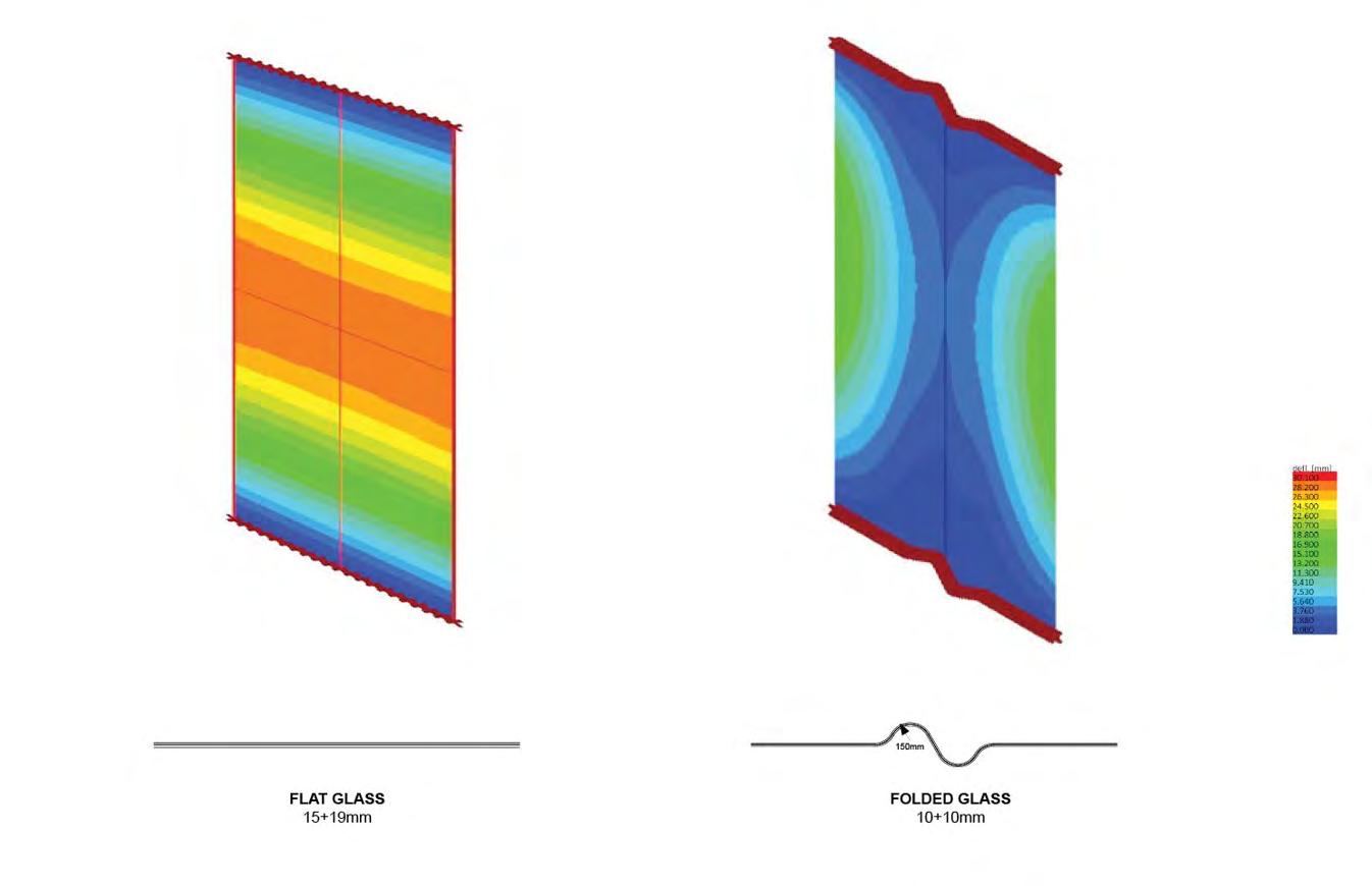 To allow for artistic freedom and structural integrity, the tight curvatures of the glass panels present enormous challenge for the standardized, industrialzed, mechanical production so prevalent in modern glass technology. Instead, a much dated, hand-crafted process is employed where a pair of annealed glass panels are