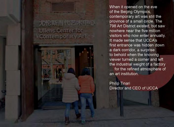The development of UCCA and Beijing’s 798 district are closely intertwined. A former industrial complex of electronic appliances, 798 gained momentum as an art district during the 90s owing to its large industrial spaces and affordable rent. Since UCCA opened its doors in 2007 to the public, the economic boom in China has brought new funding and international recognition to the area. Lacking an overall masterplan, the art district has gradually morphed into an ensemble of disparate architectural and programmatic elements, with ad hoc rehabilitations and patchwork renovations.