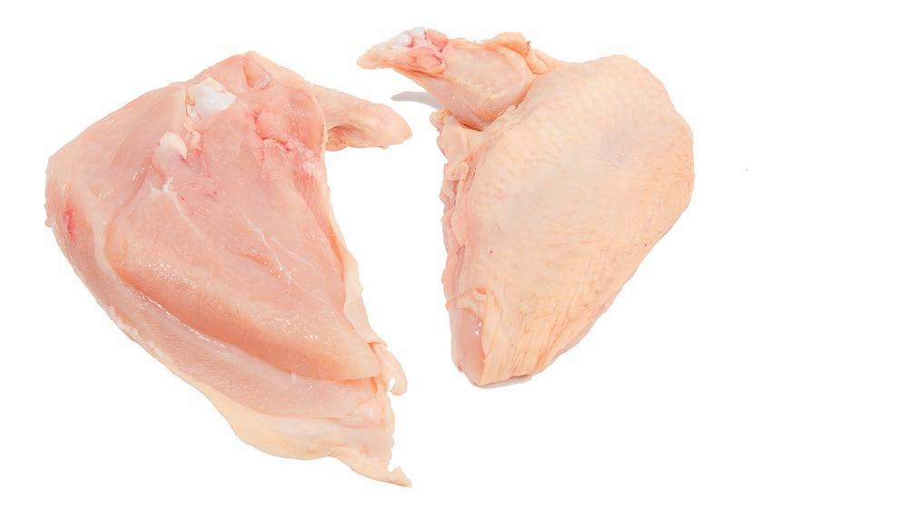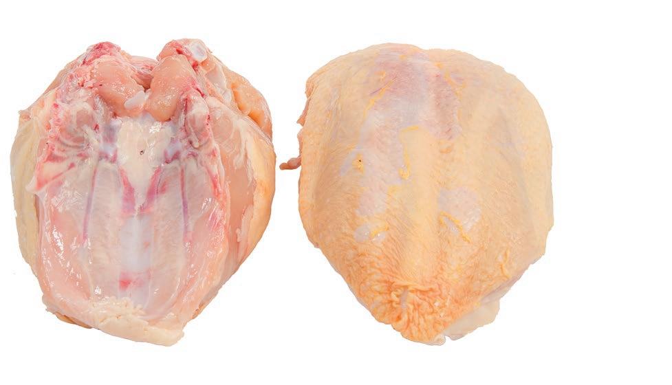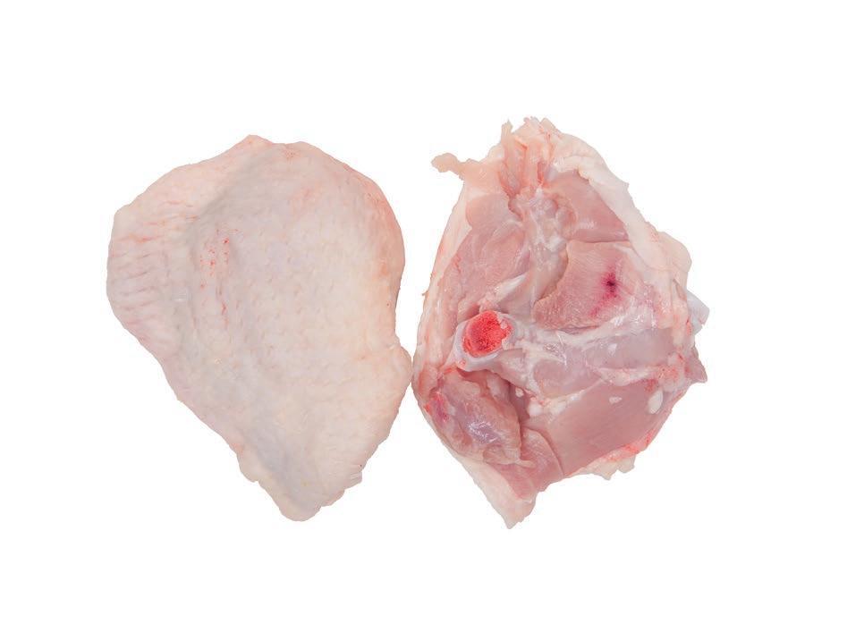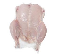 Pollo entero limpio, al cual se le ha sacado la piel y se ha envasado al vacío, sin menudillos.