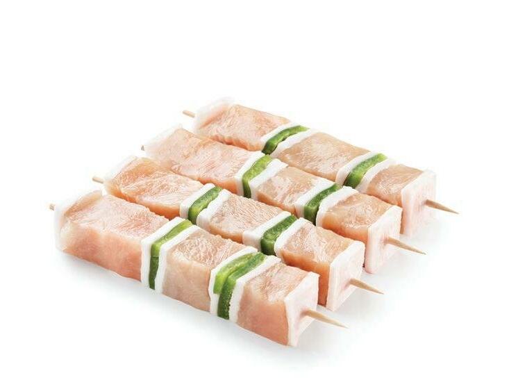 Cubeta Brochetas Brochetas de pechuga de pollo con 1 palo 1001154 6,8kg 24 un = 3,4kg | 2 Un kg Variable