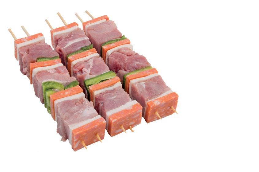 Cubeta Brochetas Brochetas de pavo con chorizo con 2 palos 1001163 7,2kg 15 un = 3,6kg | 2 Un kg Variable