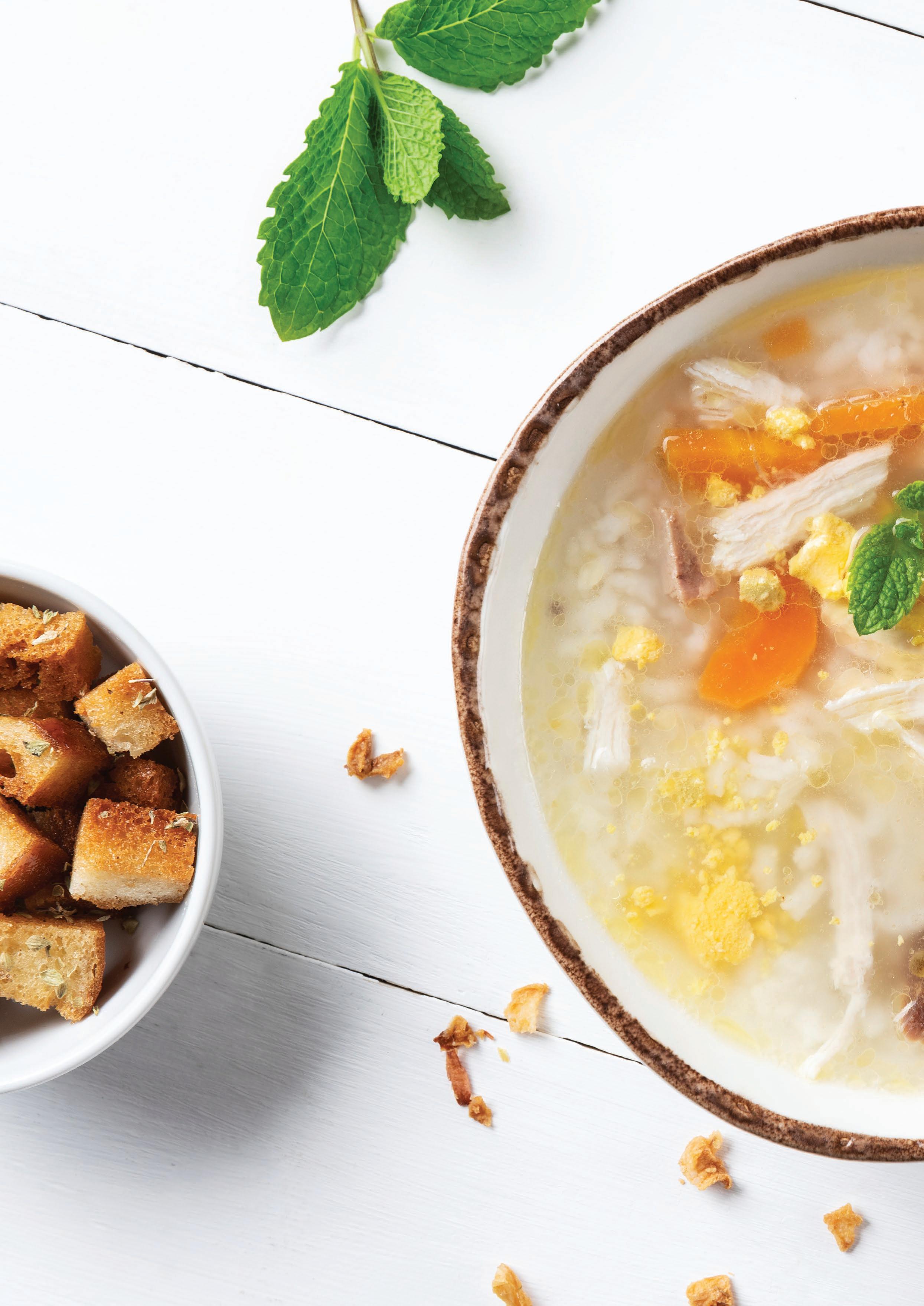 Pollo entero limpio, acompañado de embalaje con menudillos (molleja, hígado, corazón y patas).