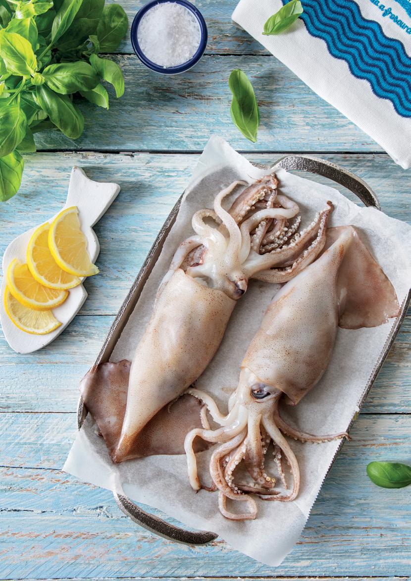 Sugerencia de presentación de Calamar Limpio. El producto se vende ultracongelado.