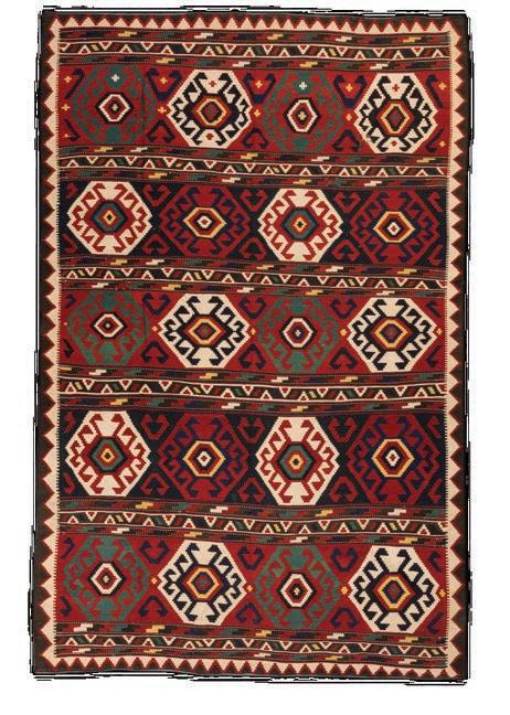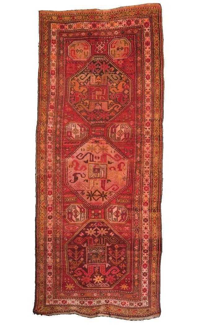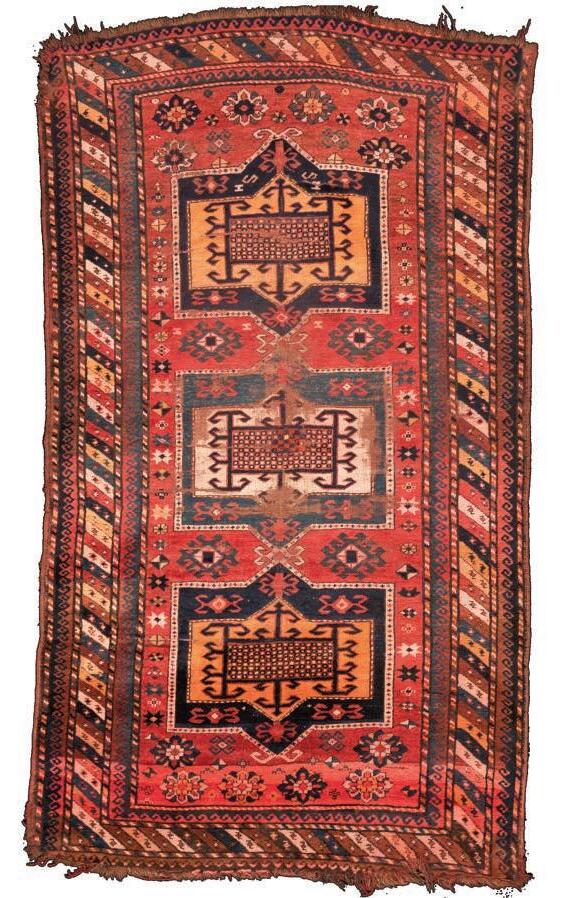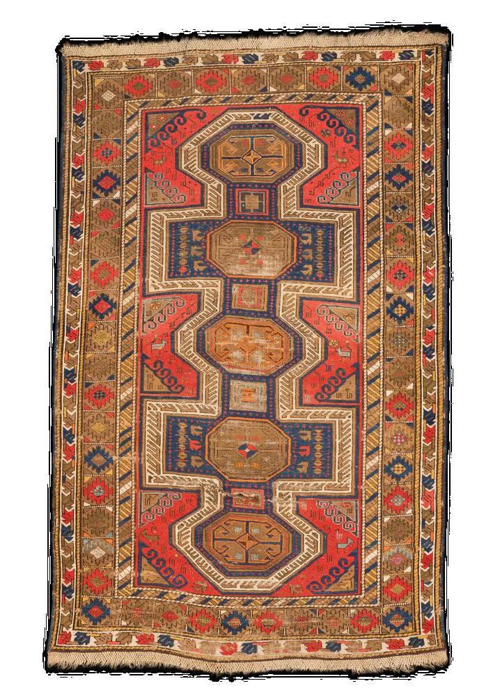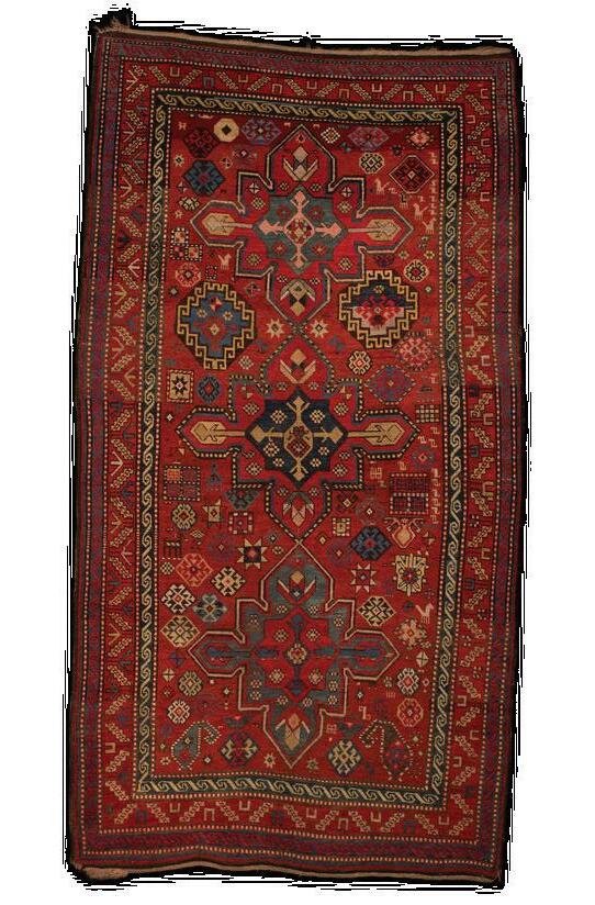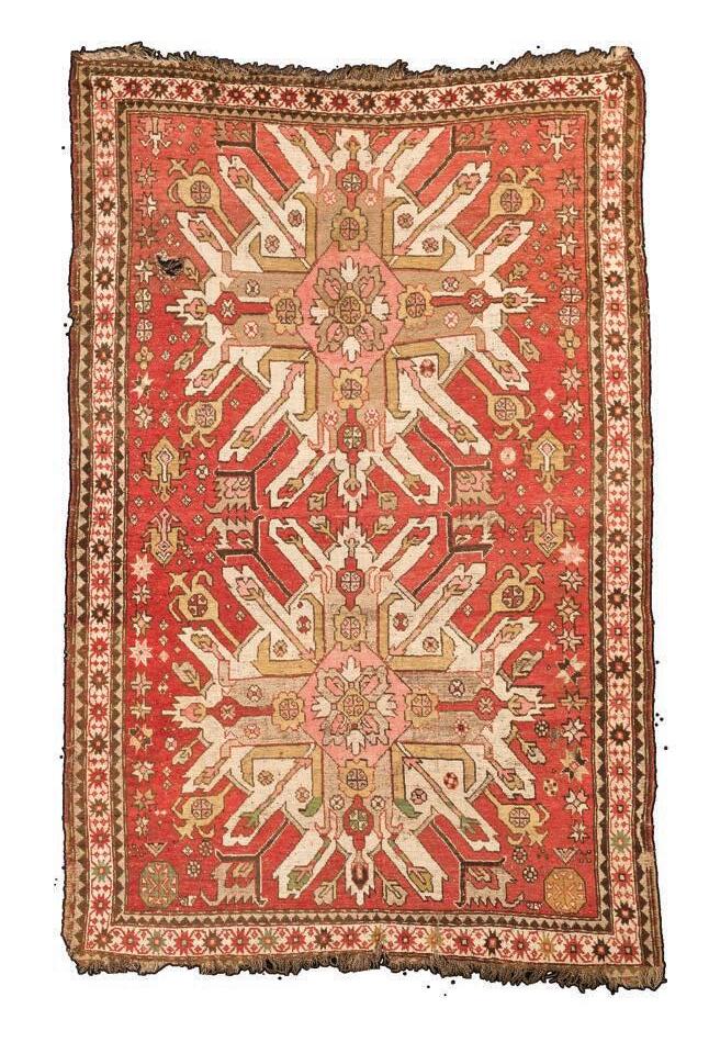 The collection features a significant number of rugs known for their large, many-sided compositions, classified under the “Memling” type. These rugs, traditionally produced in the rug-making centers of historical Armenia and its surrounding regions, are represented