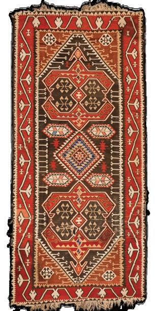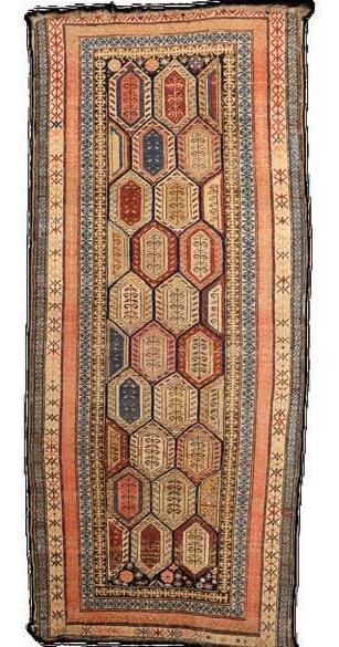 Rug “With a many-sided stepped composition” Artsakh-Zangezur, beginning of the 20th century, wool, 250*110, double knot, Inventory No:11115