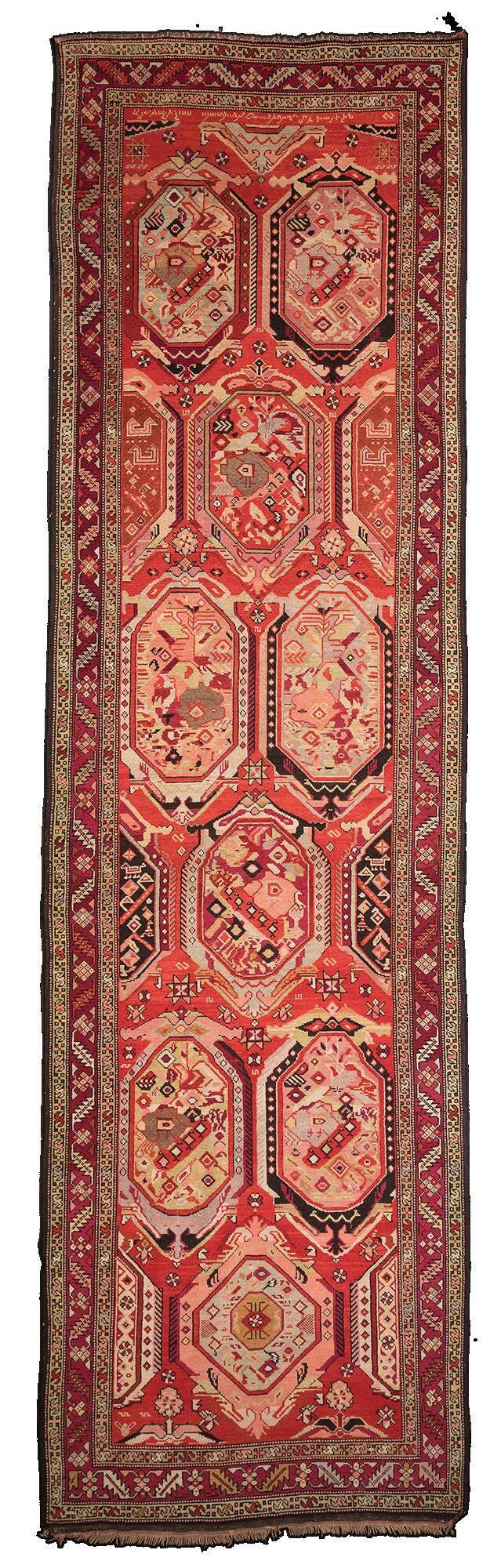 It is therefore no coincidence that the collection contains many rugs and carpets featuring dated Armenian inscriptions and ethnographically precise details. Most of these pieces originate from the 19th century and are vital for historical and comparative research. They accurately reveal their places of origin, thus allowing for comparative research that aids in the identification of the geographical regions and the periods of creation of similar rugs.