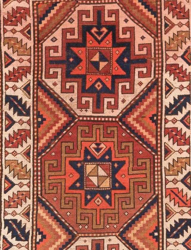 Unlike classic “Vahan” rugs from the the Sevan basin, Northern Artsakh, and Tavush, which typically feature a single main composition, this variant repeats the design in an interlocking pattern. It’s typical of Vaspurakan, Upper Armenia (Bardzr Hayk), and Northern Turuberan’s historical Armenian rug weaving centers. We believe this rug, part of the Bagrevand-Vanand rug weaving centers, dates back to the late 19th century. The “Lori-Pambak’’ subgroup is also represented, including two “Lori” type examples.