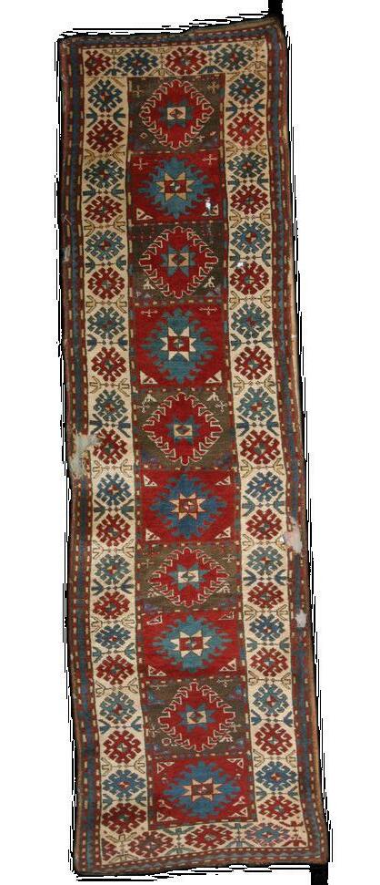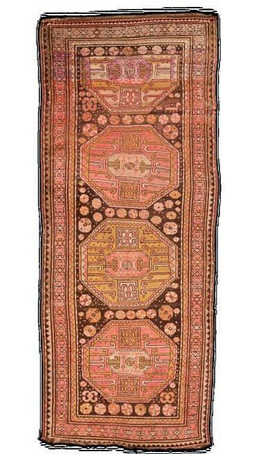 Within the collection, the most numerous are those adorned with large geometric patterns. Notably, rugs featuring rhomb-like compositions have been classified into a distinct subgroup. These rugs are further differentiated by their linear motifs and the intricacies of their rhomb like ornaments. Consequently, we have organized them based on these characteristics and have identified them by the name of the principal distribution center associated with each type.
