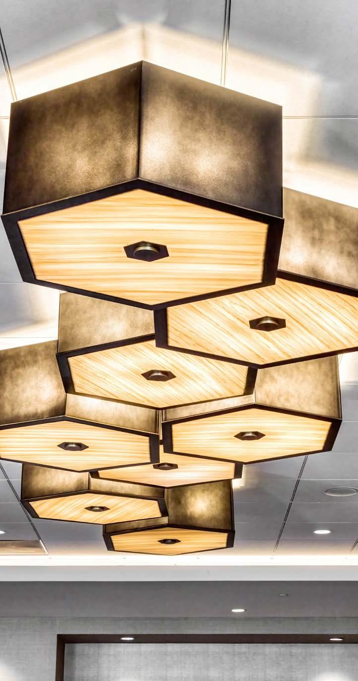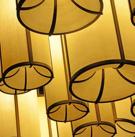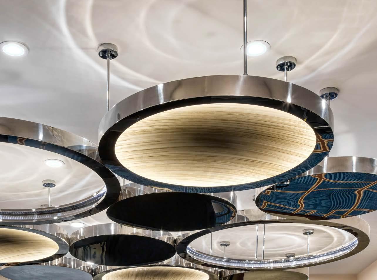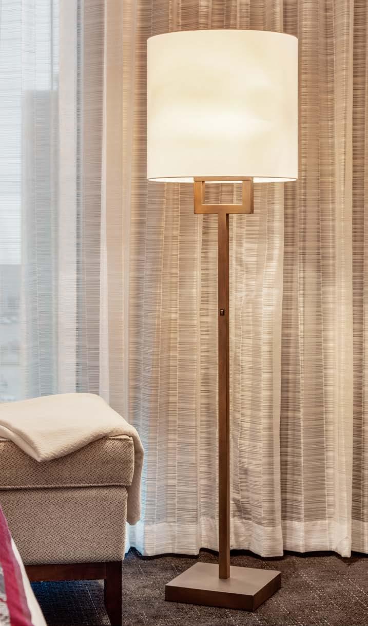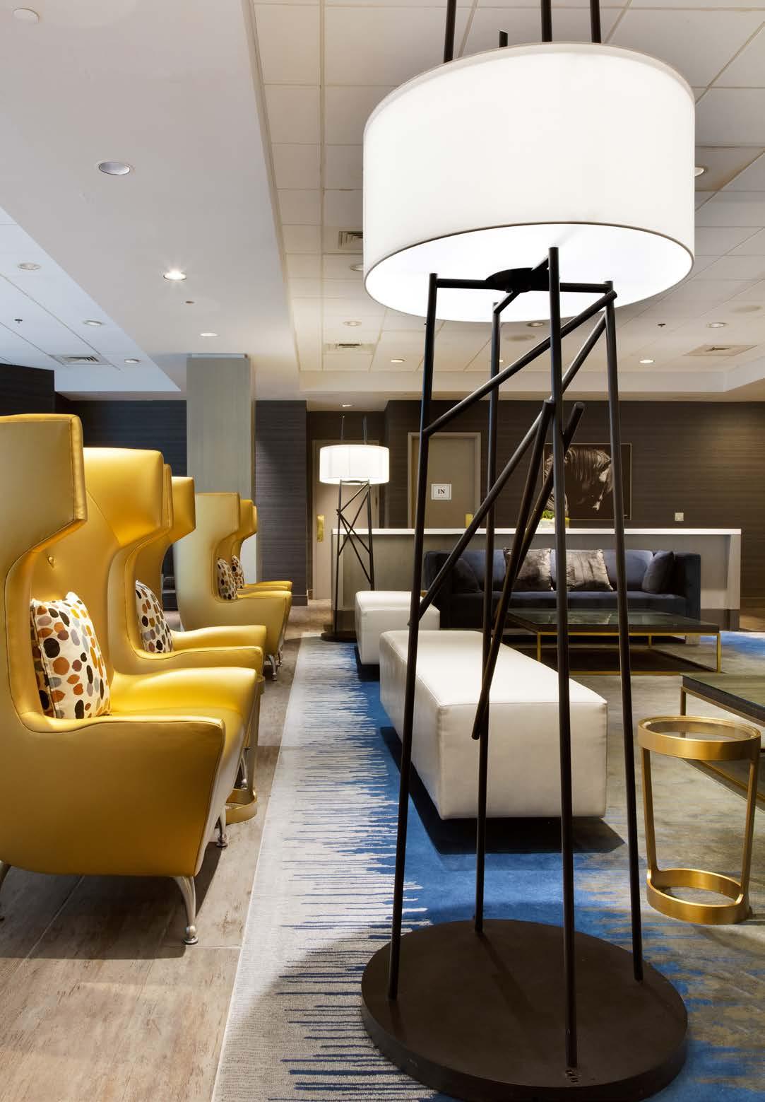 Practice makes perfect, and repetition creates drama. Large-scale surfacemounted pendants sweep across the lobby of this luxury resort, while a modernist Art Deco influence keeps the atmosphere classic and inviting throughout… even the faux alabaster sconces add a cool, sophisticated finish.