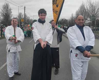 This spirit of inclusivity and community was further demonstrated in early March when the club participated in Sport Ireland’s Women in Sports Week, a national campaign aimed at increasing the visibility of women in sport and encouraging greater participation. Recognising that women are often underrepresented in martial arts, the club offered for them three free Aikido classes during the week: two in Dublin city centre and one in Balbriggan. While many expressed interest, only a few could attend, reflecting the challenges some women face in balancing new activities with their existing commitments. Those who participated, however, had an enriching experience and were presented with small gifts sponsored by Fingal County Council as a token of appreciation. Building on this momentum, the club also took part in Balbriggan’s St. Patrick’s Parade, showcasing the art of Aikido to the local community and further strengthening their ties within the town.