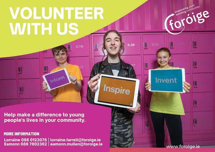 HSE Foróige Youth Health Initiative aims to enable young people who need and deserve access to good quality youth work to get it, through educational and developmental programmes. We are looking for volunteers to help run Foroige Clubs across Balbriggan. Volunteers will receive full support and training from Foroige. Help make a difference to the young people’s lives living in your community. Contact Lorraine on 0860123078.