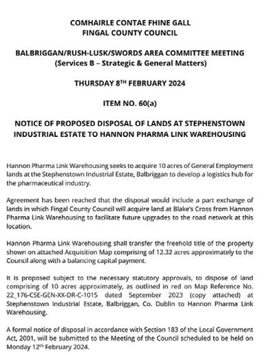 Hannon Pharma Link is a key strategic step on that journey to bring local employment opportunities to Balbriggan and Fingal.”