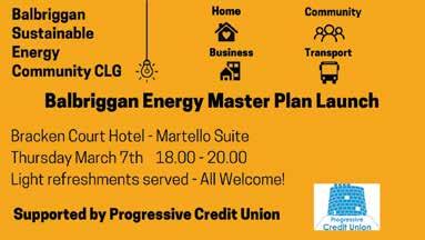 transition to a low carbon community. The launch is supported by the Progressive Credit Union and thanks to the Sustainable Energy Authority of Ireland for the grant funding. We hope to see you there.