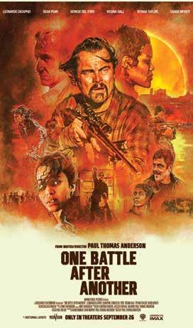 Paul Thomas Anderson’s newest sprawling epic, One Battle After Another, is less a film and more a sensory assault. An adaptation of Thomas Pynchon’s Vineland, this actionthriller, masquerading as a deeply melancholic character study, sees the director operating at his most anarchic and kinetic. The film follows Bob Ferguson (Leonardo DiCaprio), a paranoid former revolutionary living off-grid with his daughter Willa (Chase Infiniti), until his past— embodied by the grotesque and obsessive Col. Steven Lockjaw (a career-best Sean Penn)— forces them into a dizzying, nationwide chase.