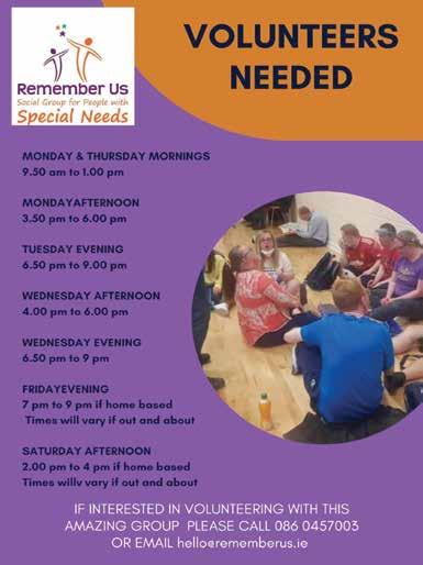 Give us a ring on 0860457003 or drop us an email at hello@ rememberus.ie if you are interested in supporting us in anyway or if you would like to become a volunteer etc.