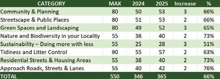 Sustainability – doing less with more (55 points), Tidiness & Litter Control (90 points), Residential Streets and Housing Areas (55), Approach Roads Streets and Lanes (55 points)
