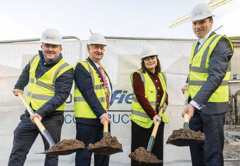 North Court is next to another major project — the €40 million Swords Cultural Quarter. This will include a library, theatre, gallery, maker space, arts spaces and a café, all within an iconic new building due to open in 2027. The project also includes improving the area around Swords Castle to create a better public space for events. By making use of existing services and being close to jobs and public transport, North Court will offer sustainable living for the 38 people who will eventually move in. Turning a semi derelict site into new homes will also help improve the look and feel of the street. Mayor of Fingal, Cllr. Tom O’Leary commented on the occasion: “I am delighted to turn the sod on North Court Swords which will provide much needed housing, including age friendly homes, in the heart of the town close to all amenities. Developments such as this, which sees the conversion of semi derelict houses into three new homes and additional ten apartments to the rear, contribute to combatting dereliction and breathing life into our town centres”.