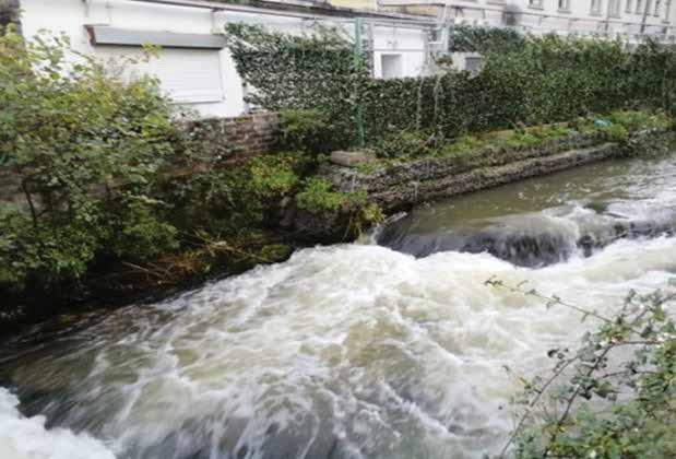 marking the historic levels of water here. Down on the left at riverside you will also see the typical entry-piers I’ve cleaned, placed here to allow access to the river for washing clothes or drawing water. These piers appear all along the Ward to allow safe access to a once powerful and dangerous stream.