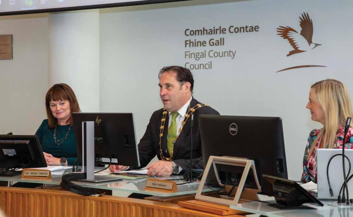 In his inaugural address after his recent election as Mayor Of Fingal, Cllr Adrian Henchy promised to be a “Mayor for All”. This is an excerpt from that speech: “Is mór an onóir dom bheith tofa mar Mhéara Fhine Gall inniú ag sibhse mo chuid comhghleacaithe anseo inniú inár Seomra Comhairle.Buíochas ó chroí le gach duine a thug tacaíocht dom, agus buíochas freisin le gach comhairleoir is gach ball foirne den ár gComhairle a oibreann go dian gach lá ar son na saoránaigh áitiúla.Geallaimse do mhuintir Fhine Gall go ndéanfaidh mé mo dhícheall gach lá ar bhur son, agus mar Mhéara, ní hamháín ar son muitir mo thoghcheantair féin, Port Reachrainn, Domhnach Bat, Rois Eó, Lusca, Baile Bachaille, Baile Gháire, An Seanbhaile, An Aill agus Baile Scadán, ach as son gach duine a chónaíonn, a oibríonn agus a thugann cuairt i gContae Fhine Gall.
