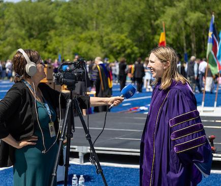 Luther’s Commencement aired in Norway! The Norwegian national broadcasting network NRK sent their Washington, D.C., correspondent to Decorah to cover it. Along with interviewing Commencement speaker Ine Eriksen Søreide, Norway’s former minister of foreign affairs, and associate professor Maren Johnson, the reporter also interviewed graduating seniors Haakon Rustad ‘25 and Megan Hyla Miller ‘25 . Watch the coverage around minute 25.