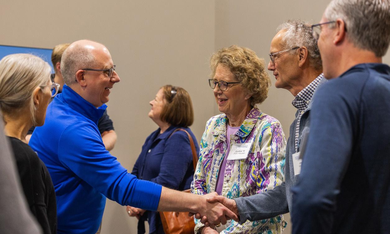 Left: in April, President Chamberlain met with alumni and friends in Rochester, Minnesota.