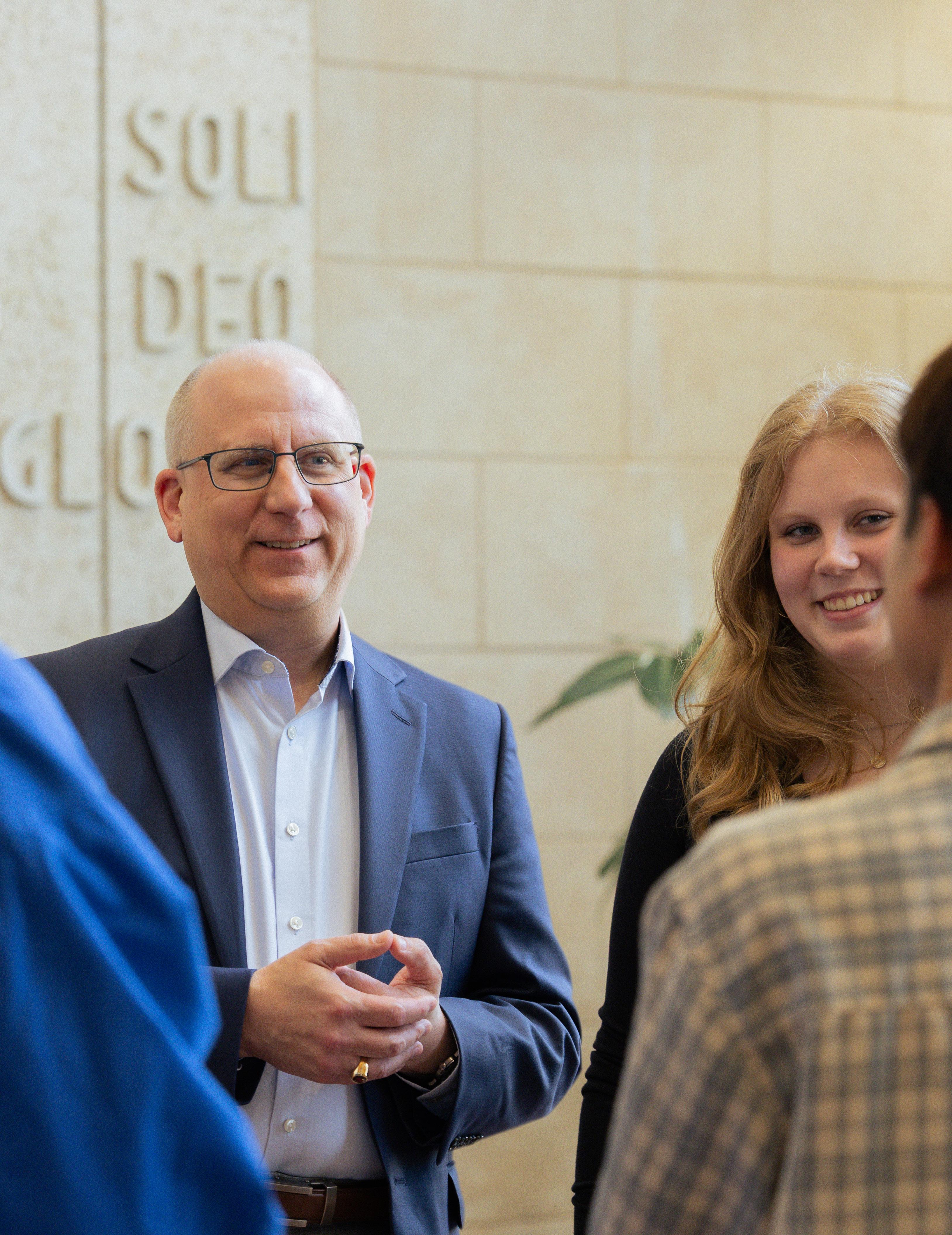 Brad Chamberlain became Luther’s 12th president in February. A graduate of Gustavus Adolphus College, he has a 24-year history at Luther, first teaching chemistry, then serving as dean for institutional planning and mission, vice president for mission and communication, and provost. He is the husband of Julie (Torkelson) Chamberlain ’96 and father of Drew ’26 and Liam ’29.
