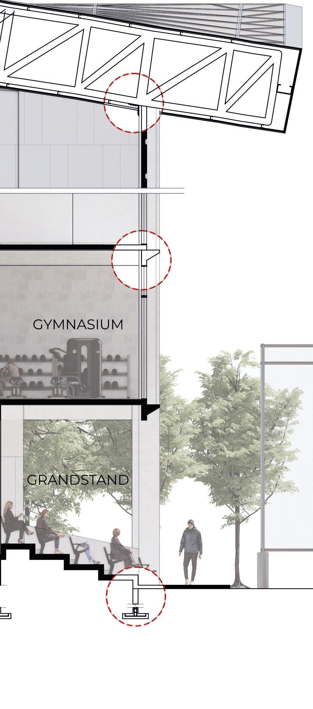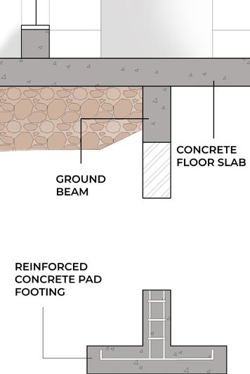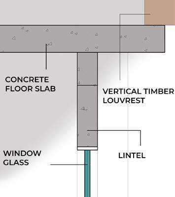 Using conventional construction of column and beam , with addition off steel space frame as roof structure to create a contemporary design Bay Section