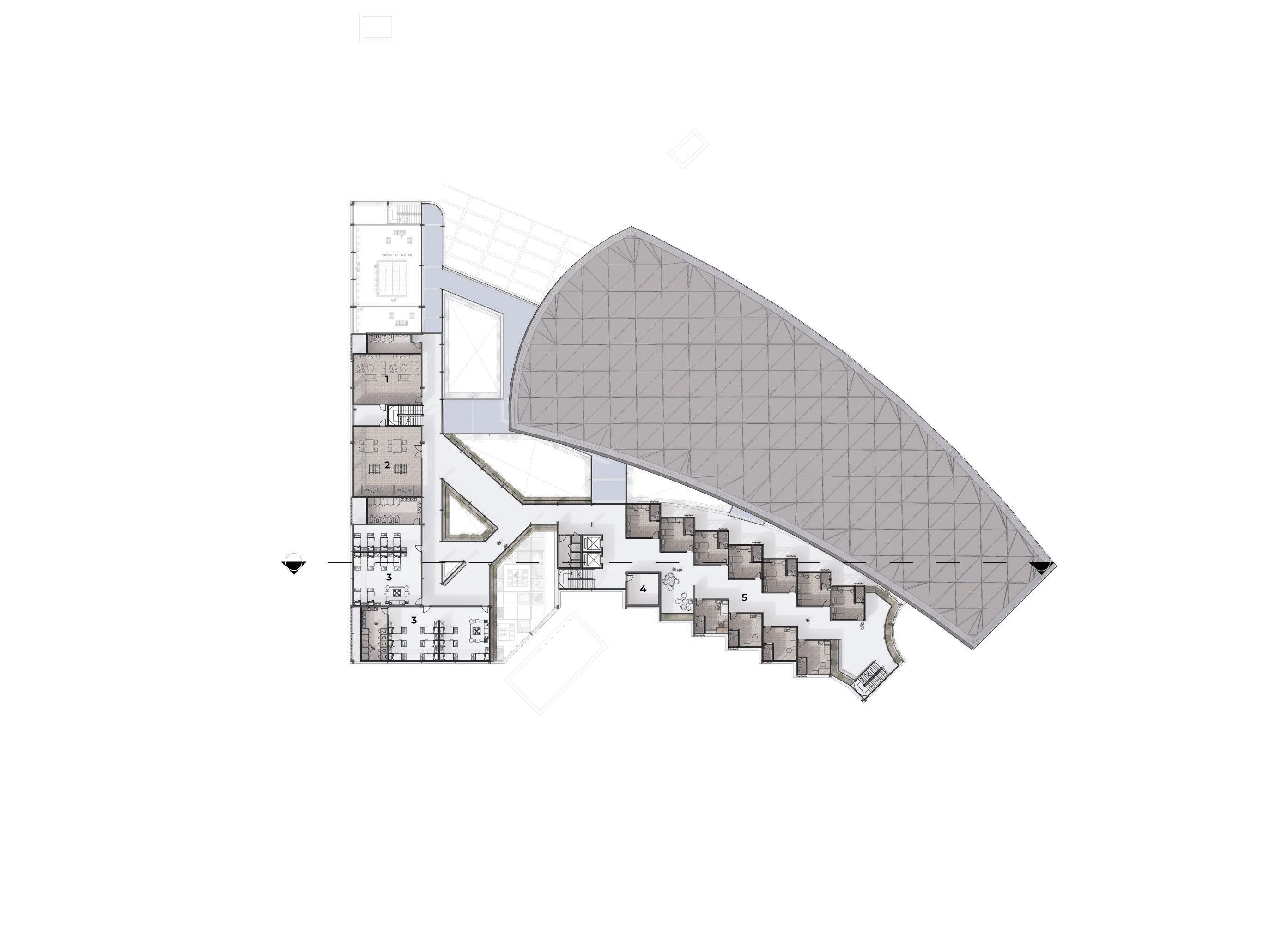 Building mass responds to site boundary showing adaptive design