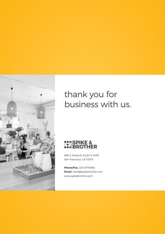866 S. State St, Suite IV #455 San Francisco, CA 10001 Phone/Fax. (20) 5778990 Email. hello@spikebrother.com www.spikebrother.com