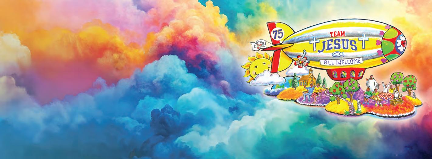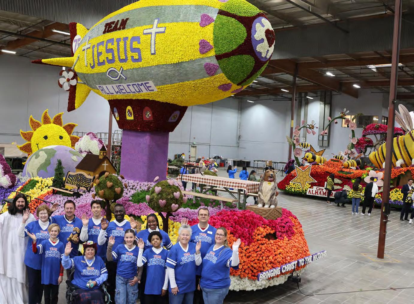 Honoring the 2026 Tournament of Roses theme, “The Magic in Teamwork,” this year’s LHM anniversary entry was titled “Bringing Christ to the Nations®.” Its design featured a joyful “Team Jesus” blimp soaring over the world, while Jesus stepped forth from the church to celebrate with 12 modern-day disciples beneath the message “All Welcome.” The float honored the diverse vocations through which God builds His church, represented by riders such as a teacher, missionary, pastor, and others who live out Christ’s call every day.
