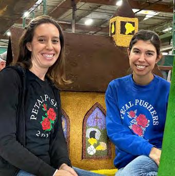Sisters Alicia and Kaitlyn Berry from Yorba Linda, California, started “petal pushing” through their Girl Scout troop in 1996. Their younger sisters followed in line once they were old enough to volunteer. A family tradition, their parents are Petal Pushers, too, and their grandparents were as well. “We appreciate that there is a religious float represented in the parade to share the love of Jesus widely and always enjoy having a chance to work on it.”