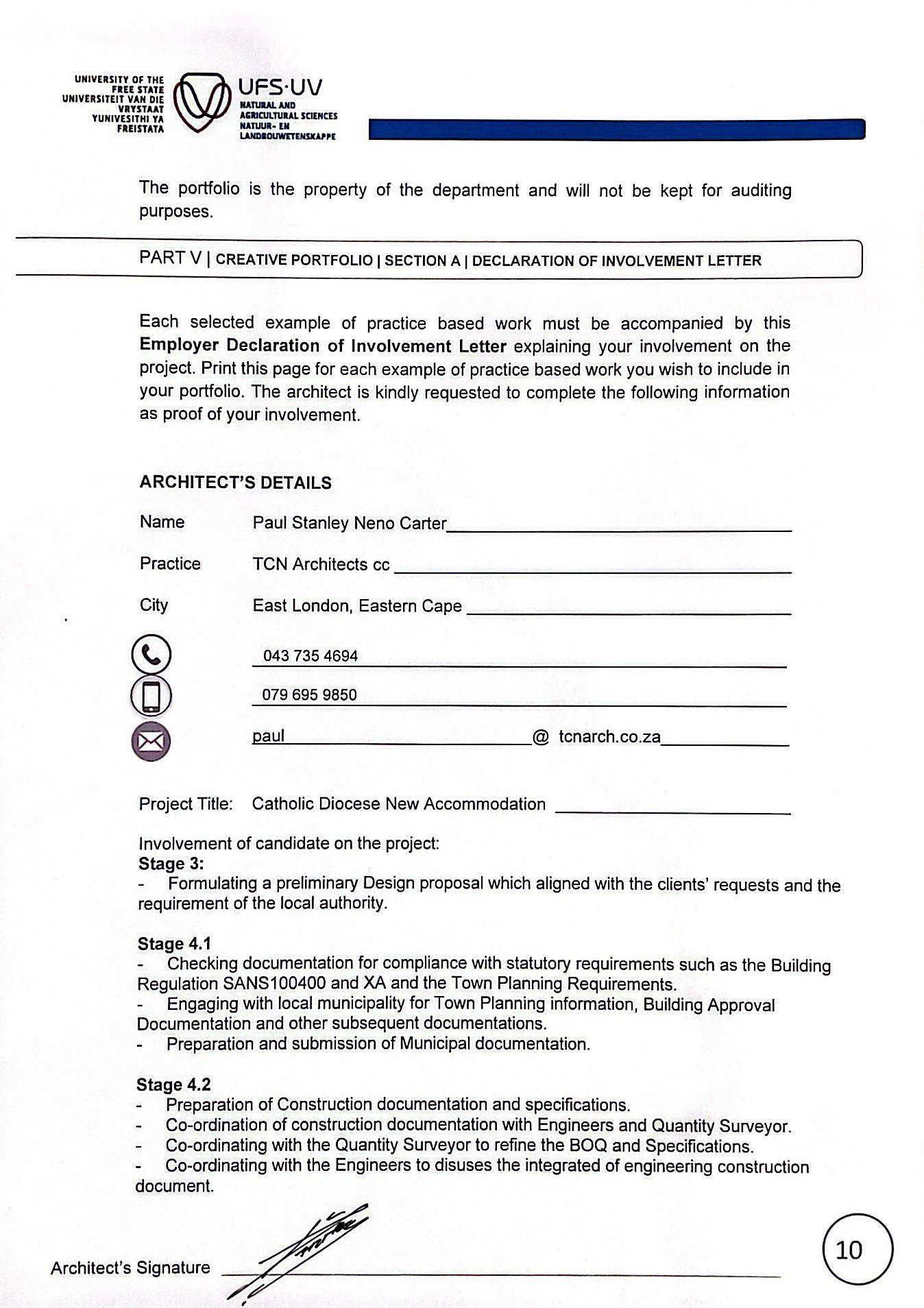 I am excited to apply for my postgraduate degree at the University of the Free State because I believe that the two-year program will set me on the path to becoming an architect of value and purpose. I intend to honor my commitment to this degree by upholding the integrity of the School of Architecture, not compromising on quality, maximizing opportunities, and always prioritizing responsibilities.
