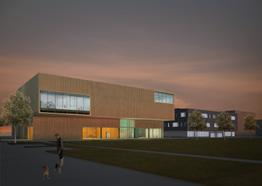 El edificio se divide en tres niveles. Dos grandes salas de deporte determinan la disposición estructural, la cual define la planta y la distribución de todo el programa. Funciones públicas del programa se ubican en planta baja para que estas puedan dar servicio al vecindario sin necesidad de otras funciones del edificio tengan que estar en uso