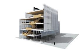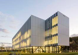 Estos dos cuerpos se dividen en tres volúmenes que se desplazan uno respecto al otro creando mayor dinamismo y juego arquitectónico pero sin sacrificar una disposición estructural clara y lógica. El exterior muestra una estética high-tech que el campus requiere. El interior se define con materiales mas naturales y cercanos al hombre.