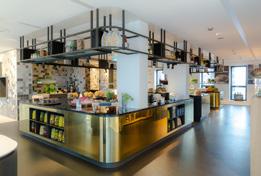 El espacio gastronómico FRESH! busca emular el sistema de mercados tradicionales mediterráneos pero desde una perspectiva noreuropea. El diseño de cada stand está completamente personalizado según las necesidades de cada comercio, dando un gran dinamismo y variedad al espacio comercial. A través de la materialidad se consigue dar homogeneidad y armonía dentro de la diversidad.
