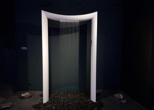 Lona nace con la pretensión de desvanecer las barreras espaciales del ambiente de baño, donde las paredes se sustituyen por el horizonte y el cielo es nuestro techo. El dentro y fuera se funden, creando a través del diseño, un diálogo entre arquitectura y entorno. Se inspira en las arquitecturas efímeras de toldos y pérgolas, las cuales se extienden desde el espacio interior hasta la calle, apoderándose de esta. De estas se extraen la sutileza y simplicidad de las formas textiles y se extrapolan al mundo del baño.