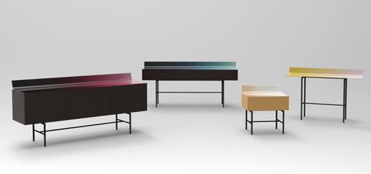 El elemento decorativo se presenta de un modo descontextualizado, en la que se desprende de su función y generando una transición curva desde la pared hasta la parte superior del mueble haciendo la función de sobre.