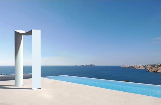 ¿Por qué no disfrutar de la experiencia de ducharse al aire libre? Lona es una ducha de exteriores realizada en su totalidad en Krion. El minimalismo de sus formas dialogan con la arquitectura, creando un juego volumétrico de luces y sombras.