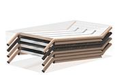 El asiento articulable reúne las necesidades de compacidad y flexibilizad que requieren las viviendas actuales. Una silla que ocupa poco espacio, versátil, que se puede guardar y transportar con facilidad.