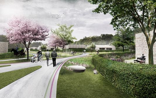 El master plan busca integrar a los residentes con el ‘mundo real’. El recorrido a través del paisaje conecta las áreas residenciales cercanas de un modo natural. Las agrupaciones residenciales son ‘invitados’ en el entorno natural que queda abierto a la recepción de residentes, familiares, cuidadores y vecinos cercanos. Es en el paisaje donde el concepto de integración revertida se expresa completamente. Cada agrupación está compuesta por cuatro apartamentos rodeados por vegetación, la cual otorga privacidad y tranquilidad a su día a