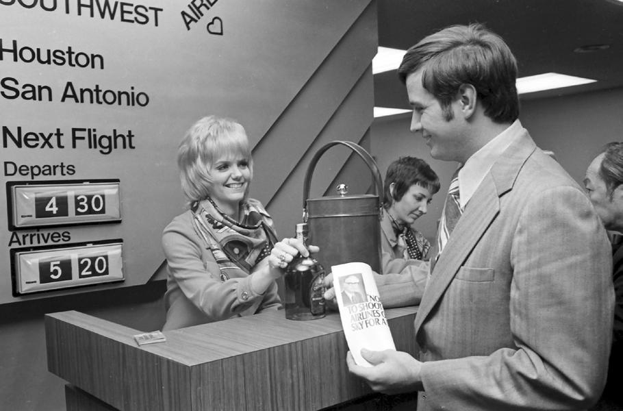 Stories include our free drink offer in response to a competitive challenge. In 1973, now-defunct Braniff Airlines offered $13 one-way fares from Dallas to Houston, hoping to put our fledgling airline out of business. Our then-president and CEO Lamar Muse shot back with a headline, “Nobody’s going to shoot Southwest Airlines out of the sky for a lousy $13,” and offered Customers a fifth of premium liquor with any full-fare ($26) ticket. Southwest became the largest alcohol distributor in Texas in those two months!