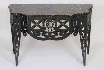 Artiste sculpteur français, spécialiste du métal. Console de style Louis XVI en acier brossé et patiné anthracite, à découpe ajourée. Dessus de marbre veiné. Signée sur le pied arrière droit : Ch. ABBE ANNECY FRANCE. Restauration d’usage et d’entretien. Provenance succession Française. Dimensions: H: 93; L: 138; l: 59 cm