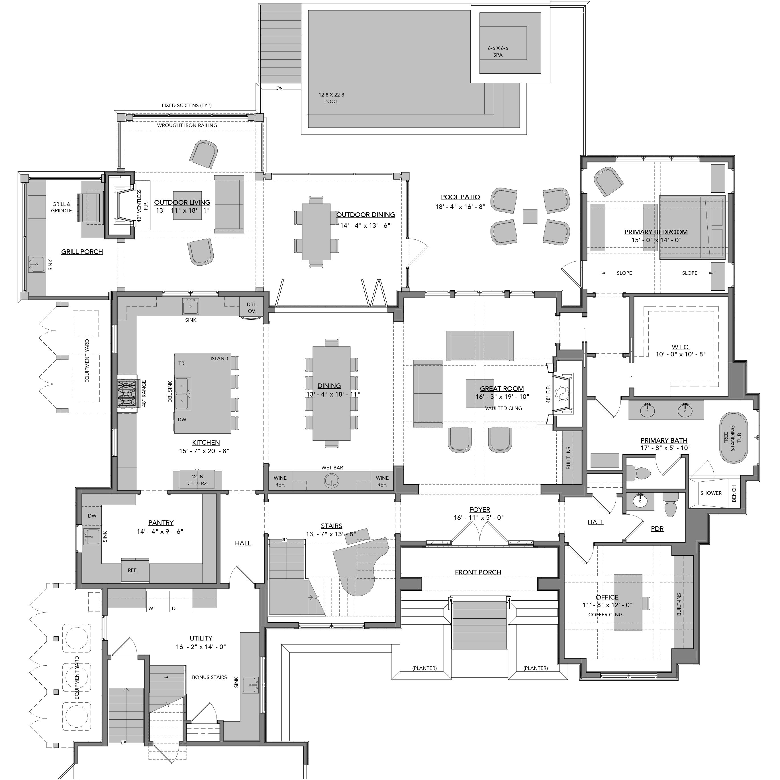 FINISH FLOOR AREA: 4,068 SF GARAGE AREA: 974 SF FRONT PORCH: 302 SF