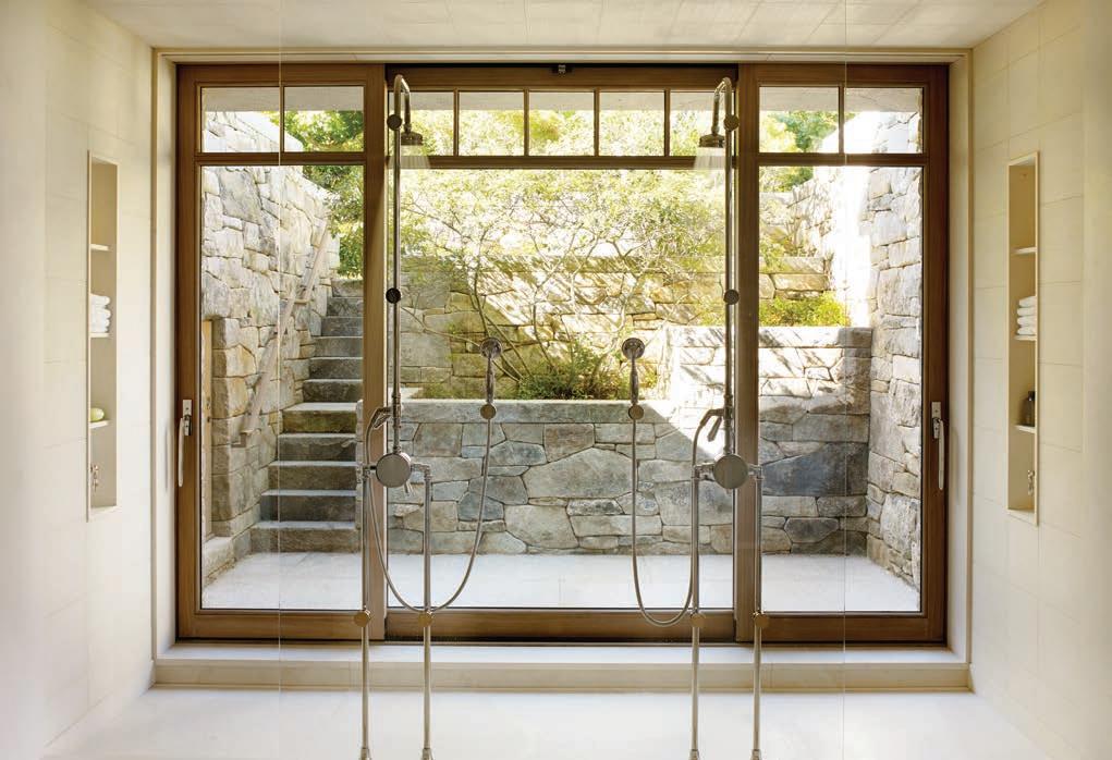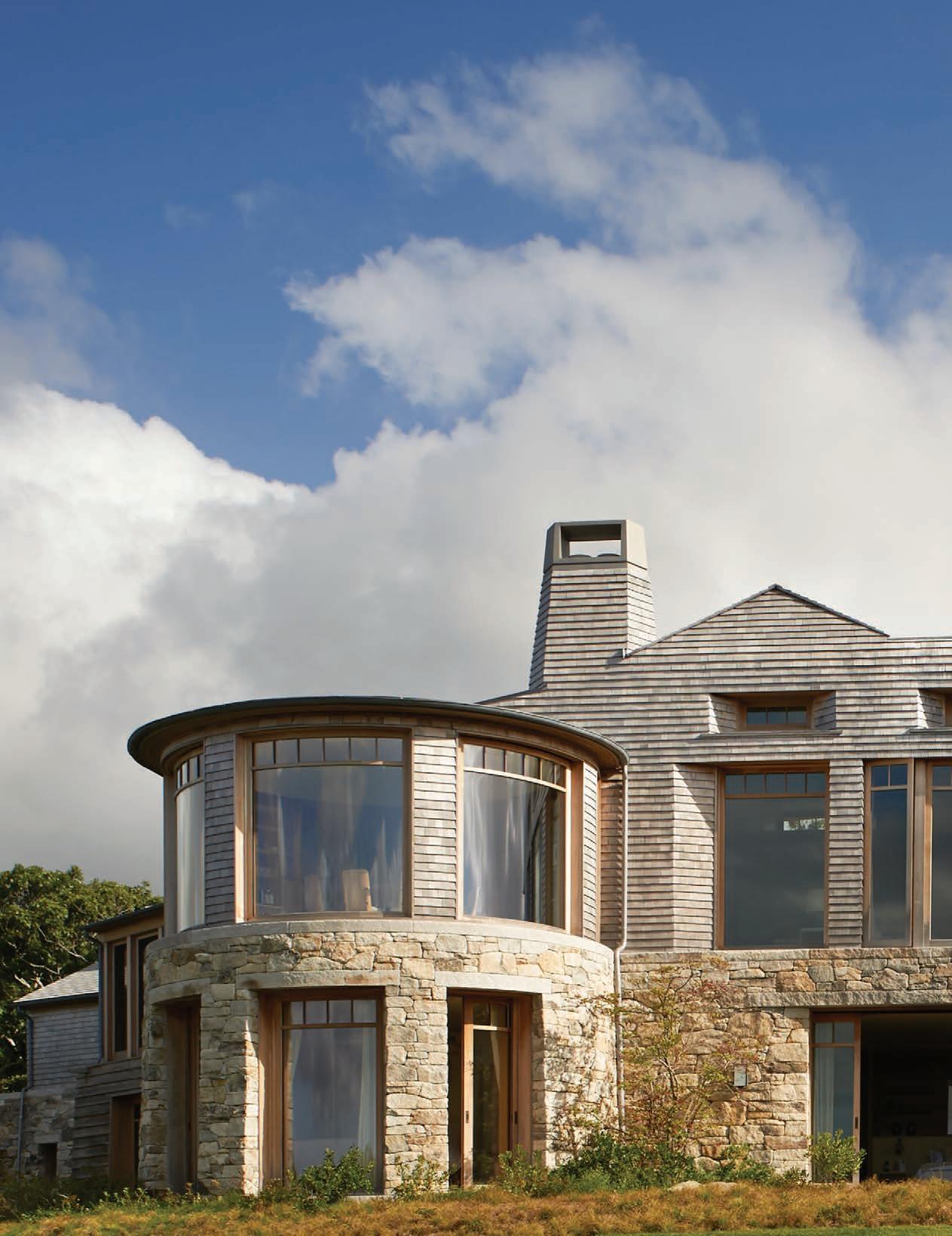 This dual awareness—of the past and the present—was especially crucial given the home’s seaside location. Balancing openness with protection meant relying on enduring materials like stone and cedar, but applying them to a design that embraces expanses of glass and abundant natural light. “Most newfangled synthetics look best when new,” Kligerman says. “But materials like real stone and shingles just get better with age.” The house thus honors the permanence of the coastline while remaining attuned to how people live today.