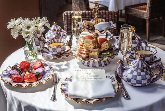 Guests can immerse themselves in the experience through the MacKenzie-Childs x Delamar Afternoon Tea, a refined and playful ritual offered at Delamar’s celebrated restaurants—l’escale in Greenwich, Artisan Southport, and Artisan West Hartford. The tea features artfully arranged finger sandwiches, seasonal pastries, and premium loose-leaf teas served atop Plum Check pieces, paired with a glass of Delamar’s private-label brut champagne for a touch of celebratory sparkle.
